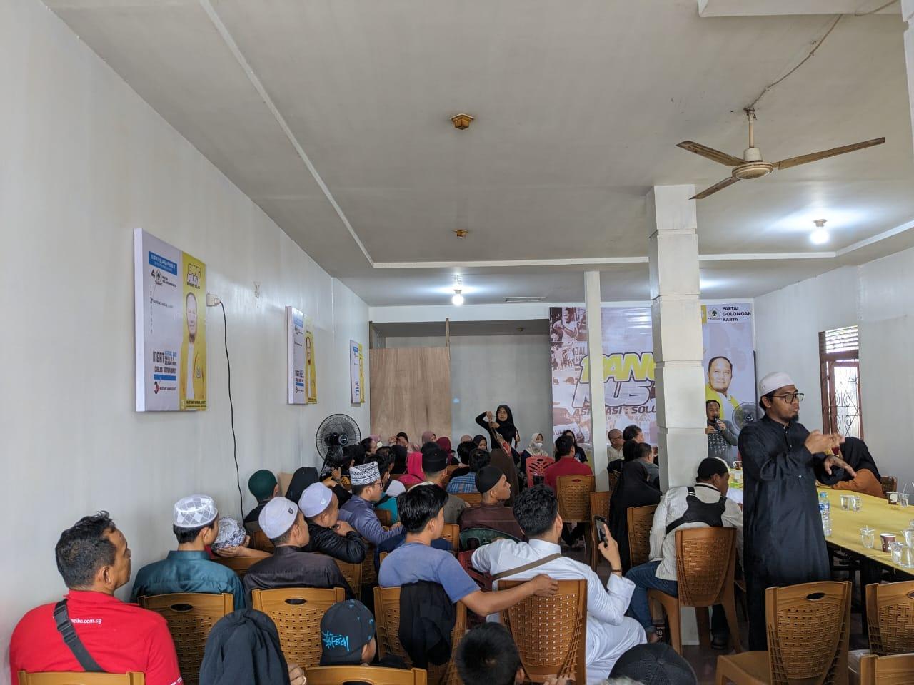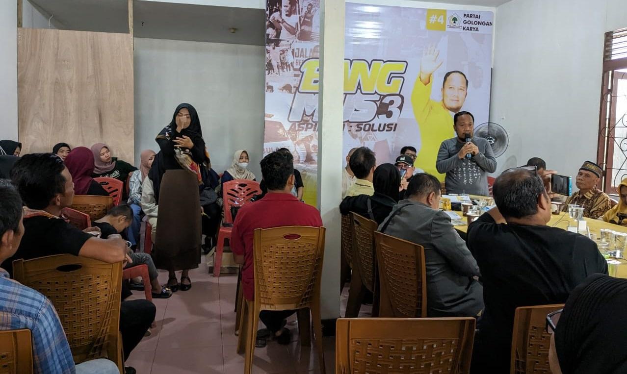 Sejak pagi di kawasan Jl. KH. Wahid Hasyim, Kecamatan Pontianak Kota mereka terlihat mulai berkumpul untuk berdikusi dan menyampaikan aspirasi dan dukungan mereka kepada Mustaat Saman, S.Hut yang pada pemilu 14 Februari 2024 mendatang maju melalui Partai Golkar untuk dapil Kota Pontianak dengan nomor urut 3.